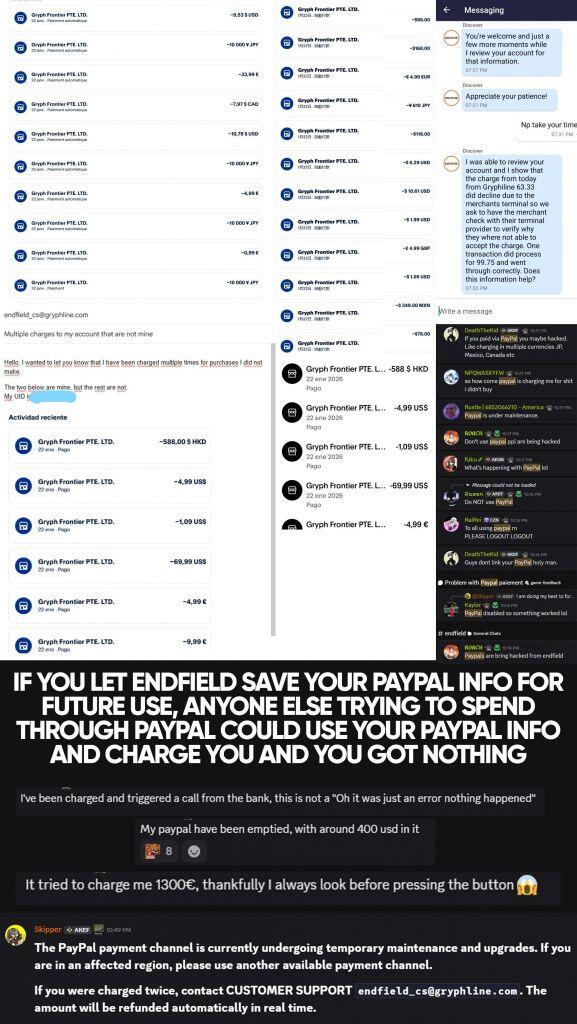 多名玩家报告 PayPal 账户被清空、信息泄露。鹰角网络已紧急关闭支付通道。查看社区证据截图,立刻采取措施保护您的资金安全。
