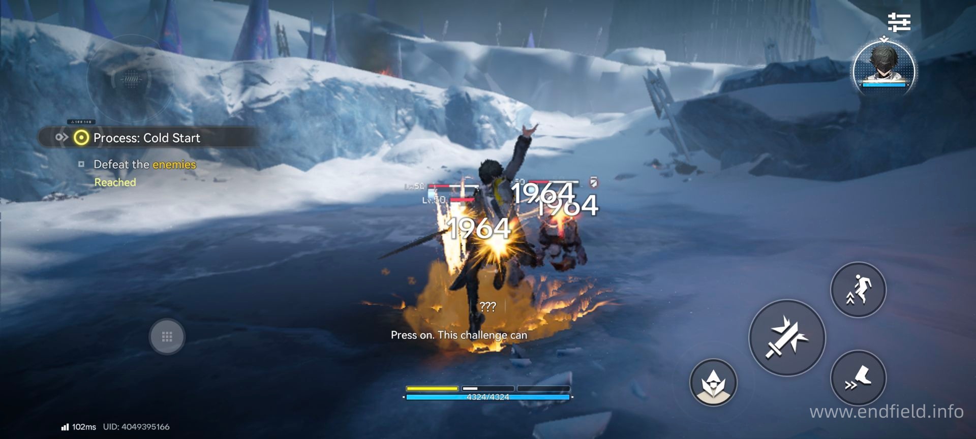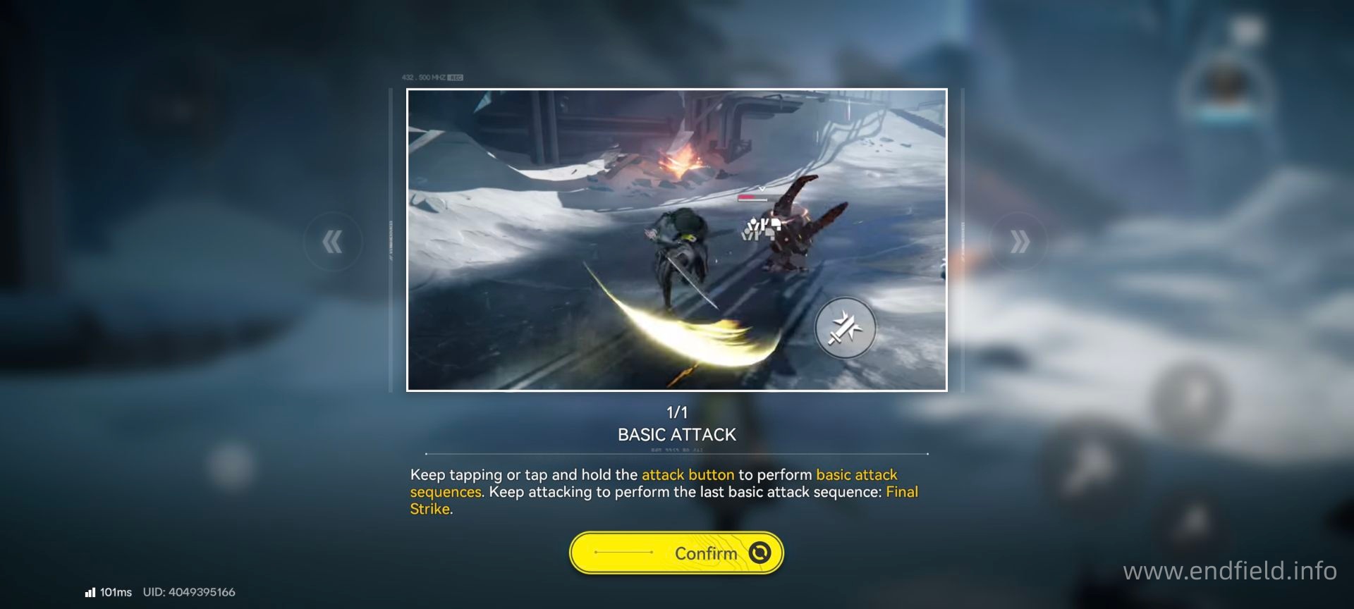 持续点击或长按攻击按钮可执行普通攻击连段。持续攻击可触发最后一段普通攻击:终结技。